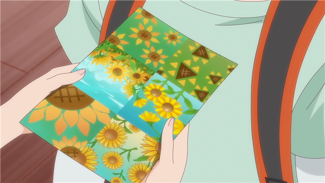 亀の置物を花だと誤認する理由づけとして、さりげなくヒマワリの絵を近くに置いてあるのはよくできているのだが。