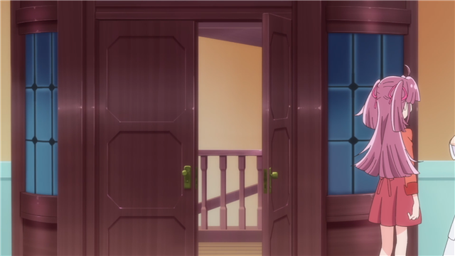 ところが花屋は家具屋とともに、応接間の右側(過去話の描写と合わせて考えると玄関がある方向)から入ってきている。おそらく、実際には内階段から応接間の様子をうかがっていて、ゴーグルがジェット先輩の手から離れたのを見てすかさず盗みに入ったのだろう。そのまままっすぐ玄関の外へ脱出しようとしたところ、外階段を降りてきた家具屋とうっかり鉢合わせてしまったため、やむをえず一緒に戻ってきたというストーリーだろうか。