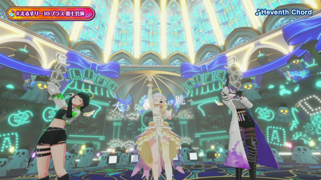 えるすりーのメインテーマソングです。毎回第一公演のオープニングと最終公演のエンディングにて、全出演者が一堂に会して歌とダンスを披露します。他ではなかなか見る機会のない、50人以上のバーチャルアイドルが一堂に集まる華やかさは圧巻の一言。