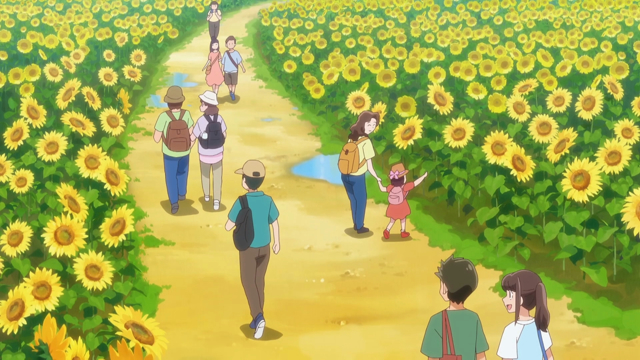 はなえが子どもたちに「すごいでしょ」と話していたのは、ヒマワリはこれ全体で1つの花なのではなく、内側の色の濃い部分の小さな粒ひとつひとつが本当の花(筒状花)で、それが集まってできているというトリビアだろうか。