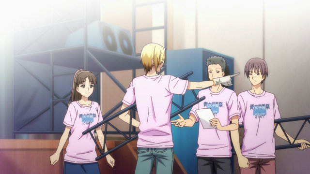 ちなみに原作ではこのような描写は存在せず、野島たちは全員伊織と同じく鉄構造物を運んでいる。アニメ化に際して男手の必要性をよりわかりやすく表現するための改変だろう。